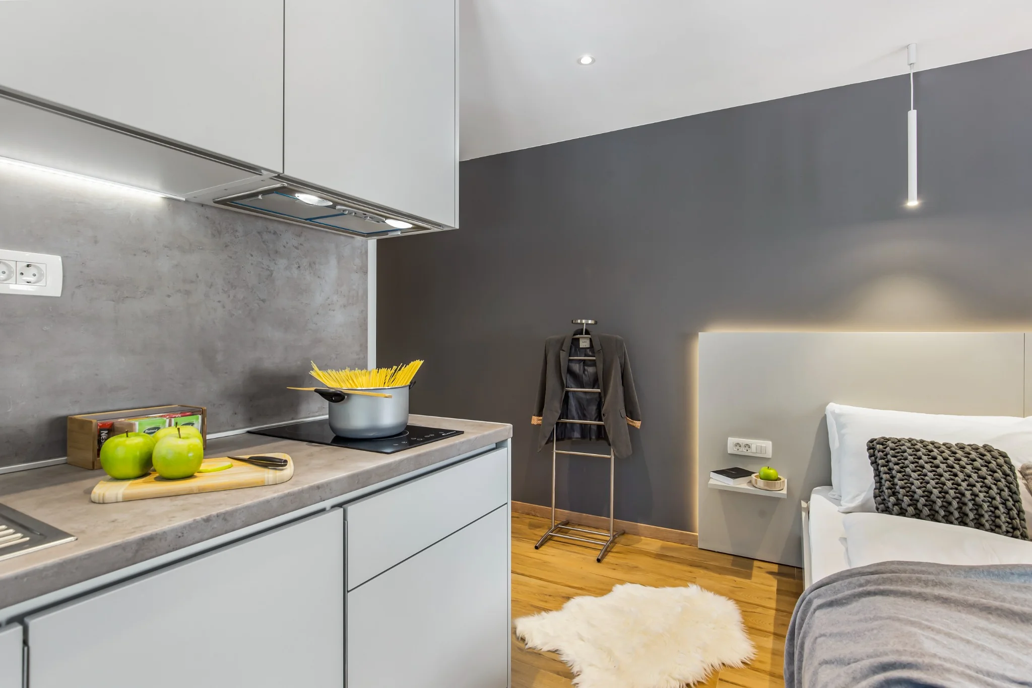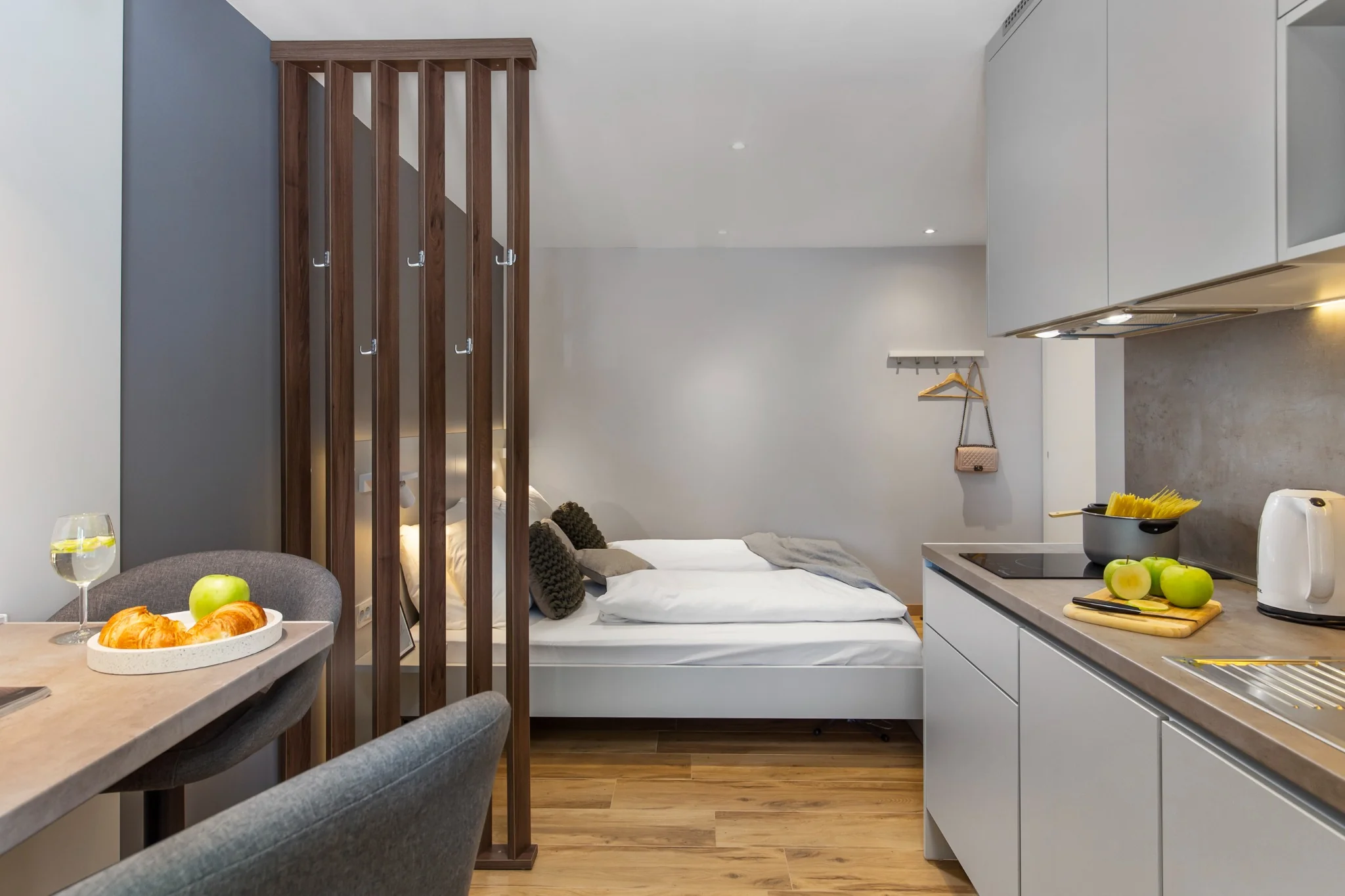 Two modern studio apartments in Rijeka city center, located directly at the beginning of Korzo, the main pedestrian street and the heart of the city.